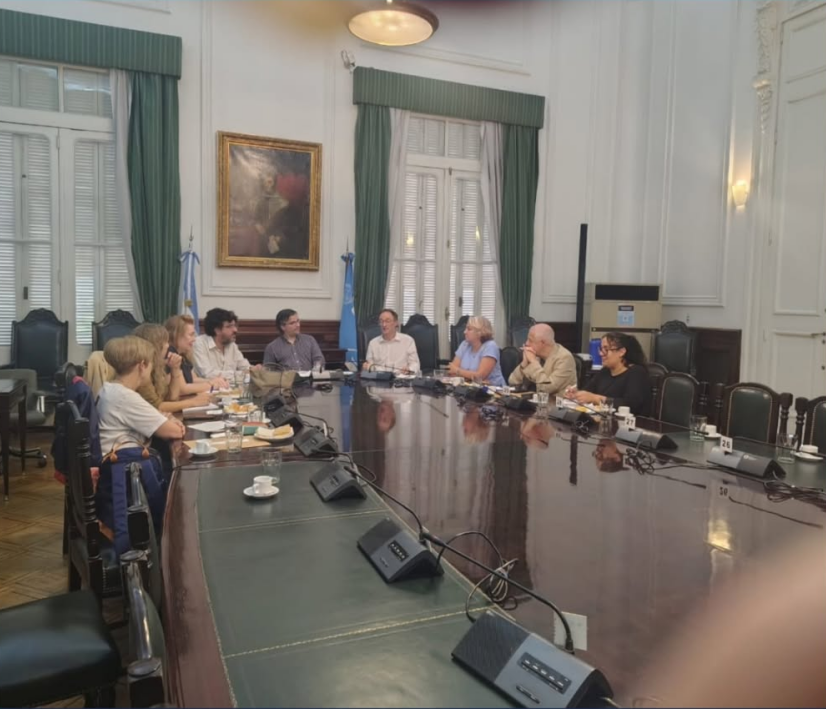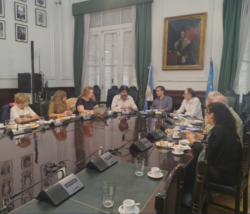 El encuentro se realizó en la Sala del Consejo Superior de la Universidad. Participaron nuestro secretario de Educación Media Hugo Granchetti, el Asesor Pedagógico Leandro Rodríguez, y los/as rectores/as del Nacional Buenos Aires, Pellegrini, ILSE y Cereijo: Valeria Bergman, Ana Barral, Roald Devetac y Victoria Serruya.