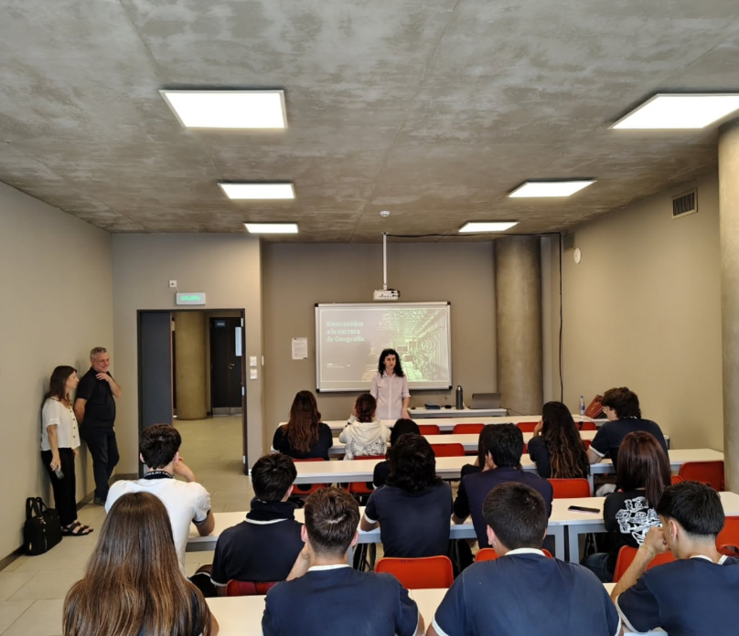 El encuentro incluyó unas palabras de bienvenida del decano de la Facultad de Filosofía y Letras, Ricardo Manetti, y de la subsecretaria de Extensión Universitaria y Bienestar Estudiantil, Catalina Kaplan, quien presentó el plan de estudios de la carrera de Geografía.