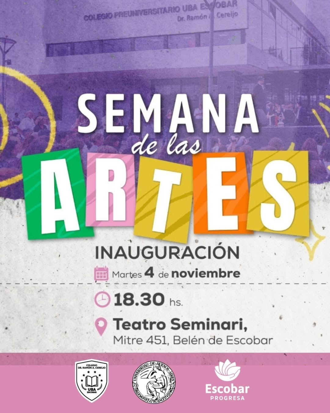 Al igual que el año pasado, realizamos la apertura de la muestra artística anual en el emblemático teatro escobarense. Contamos con funciones musicales y proyecciones audiovisuales de estudiantes de 4to/5to/6to