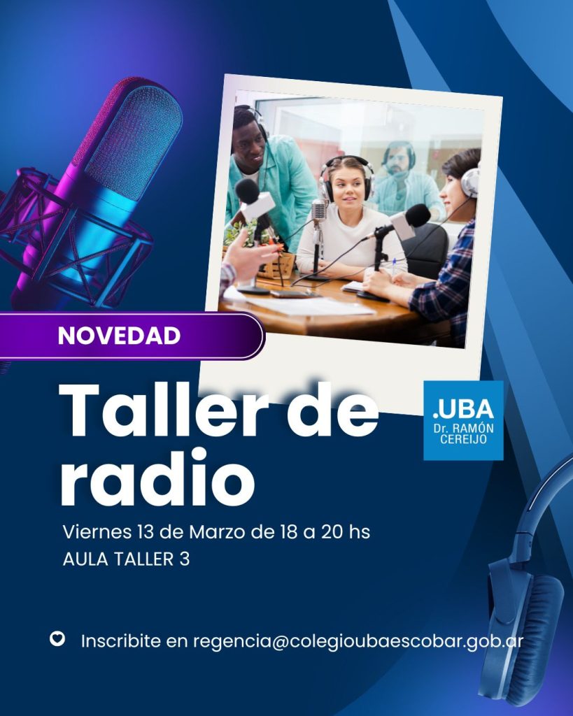 A partir del viernes 13 de marzo comenzará el Taller de Radio, una propuesta destinada a estudiantes del Ciclo Básico, que se realizará todos los viernes de 18 a 20 hs en el colegio.